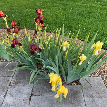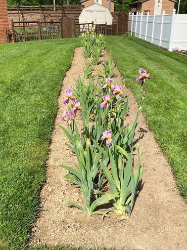 We sell tall bearded iris rhizomes (bulbs/tubers). Flowering occurs in April/May. A few of our irises are rebloomers, meaning they should bloom in the spring and in the fall. The flowering stalk grows to approximately 36” …perfect for backdrop gardening or a simple row of just irises. We also have a few dwarf varieties, whose flower stalks are approximately 12” tall.